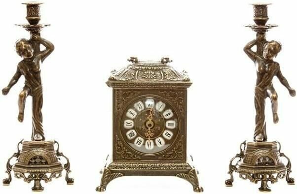 Купить Часы Ларец каминные, 2 канделябра Амур на 1 свечу, антик