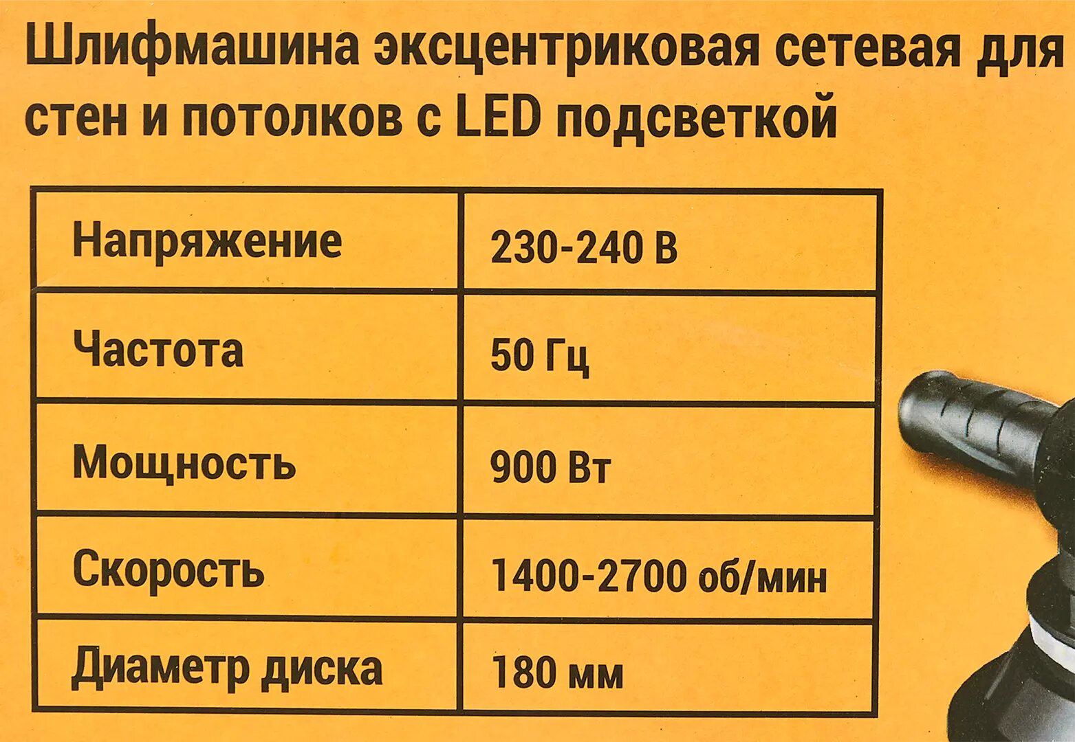 Шлифмашина эксцентриковая сетевая Deko Dkg900, 180 мм, 900 Вт, для стен и потолков, с LED подсветкой .