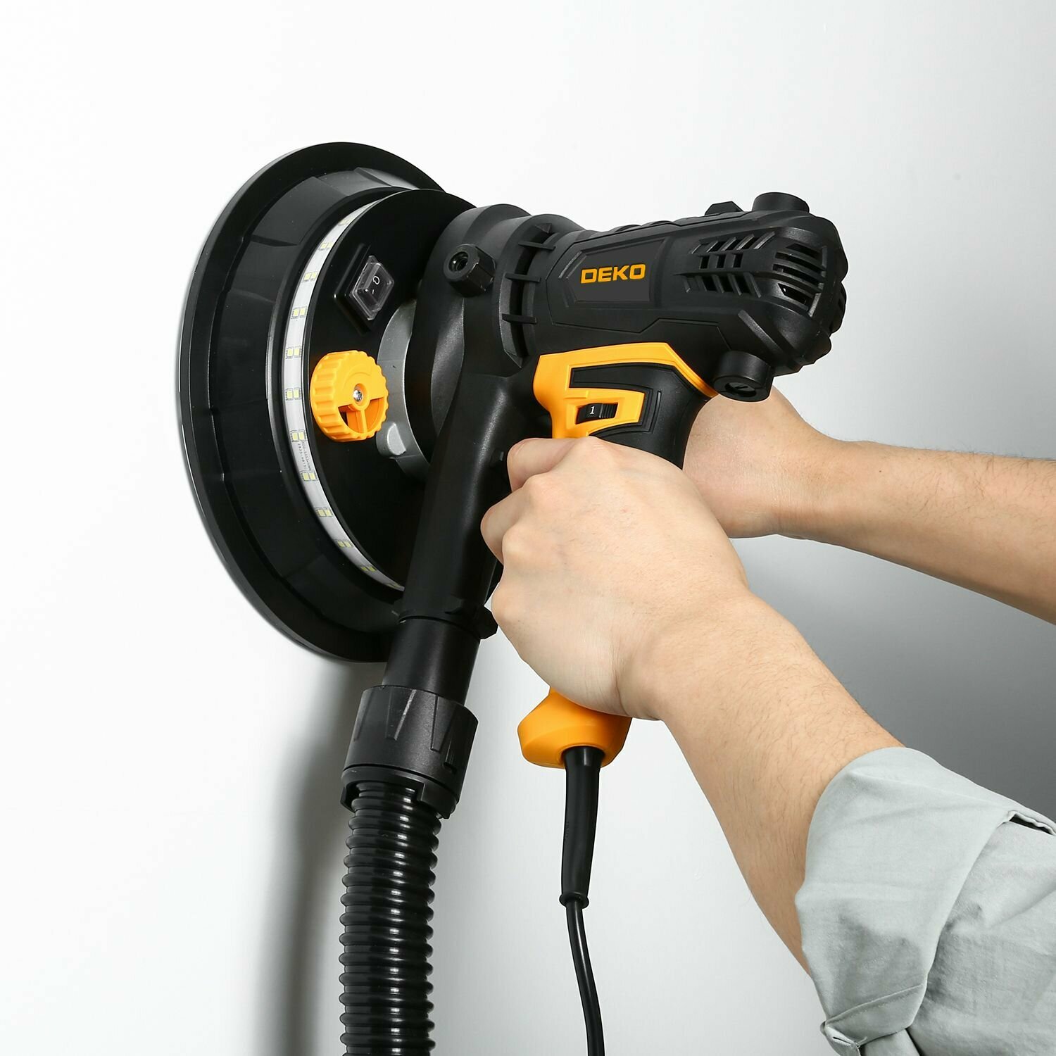 Шлифмашина сетевая DEKO DKG900, 180 мм, 900 Вт, для стен и потолков, с LED подсветкой