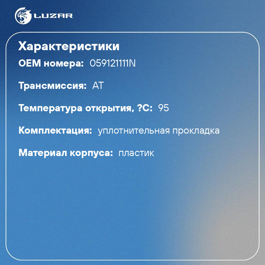 LUZAR термостат для А/М VW TOUAREG II (10-)/AUDI Q7 (06-) 3.0TDI (LT 1880) LT1880