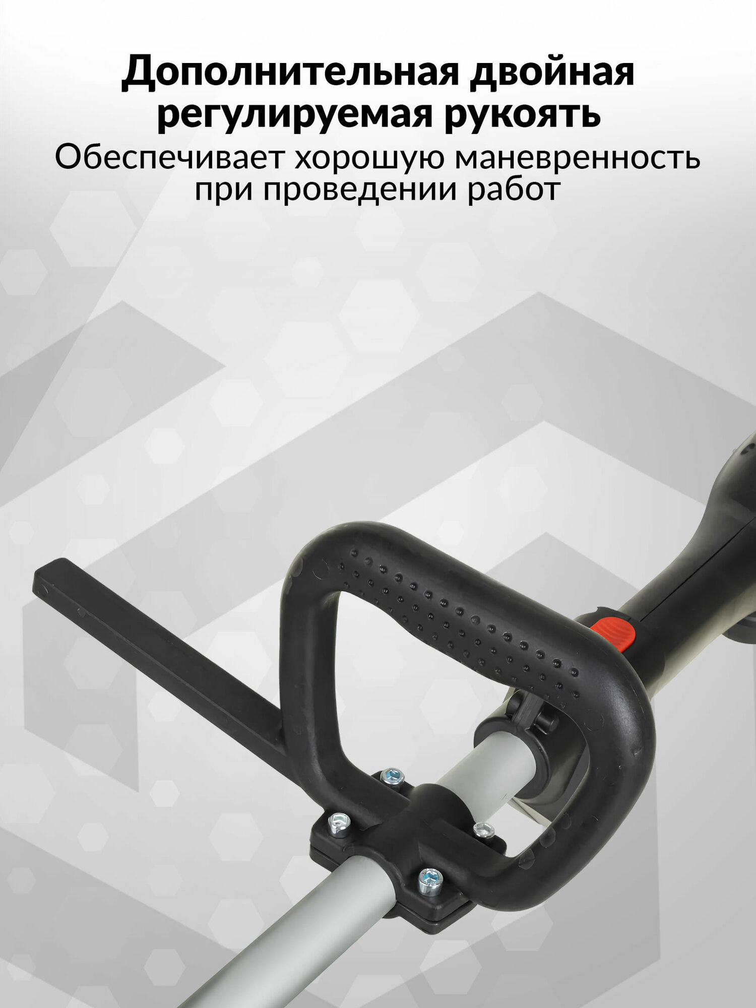 | Минусы: | слабоват,нож вообще не эффективен при такой мощности,леска нормально за счёт разлета в длинну,так как участок маленький то пойдёт учитывая цену |