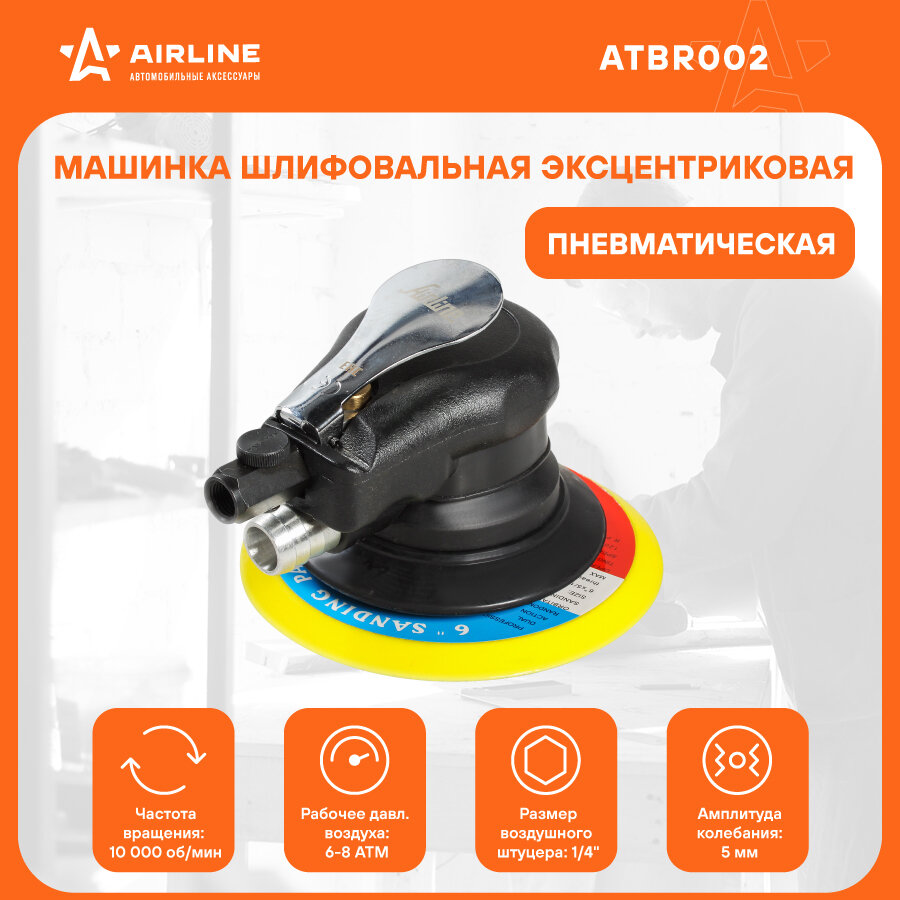 ATBR002 AIRLINE Машинка шлифовальная эксцентриковая пневматическая 150мм, ампл.колеб 5мм, 10000об/мин