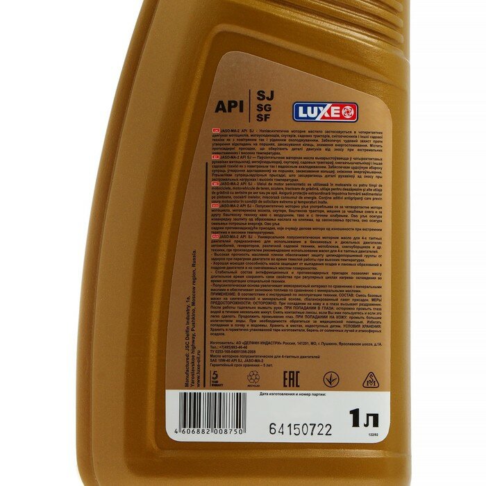 LUXE 122 псинт ДЯ 4-Т LUXЕ JASO-MA-2 4T 1 SAE 10W40