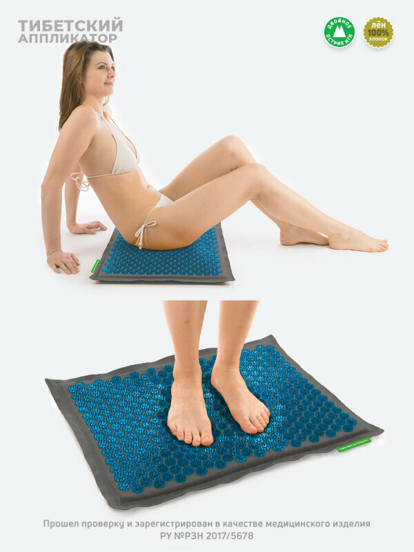 Массажный коврик лаборатория кузнецова Тибетский аппликатор (аппликатор Кузнецова) 41*60 см, комфорт, без магнитных вставок, чёрный лён, синий интересное: