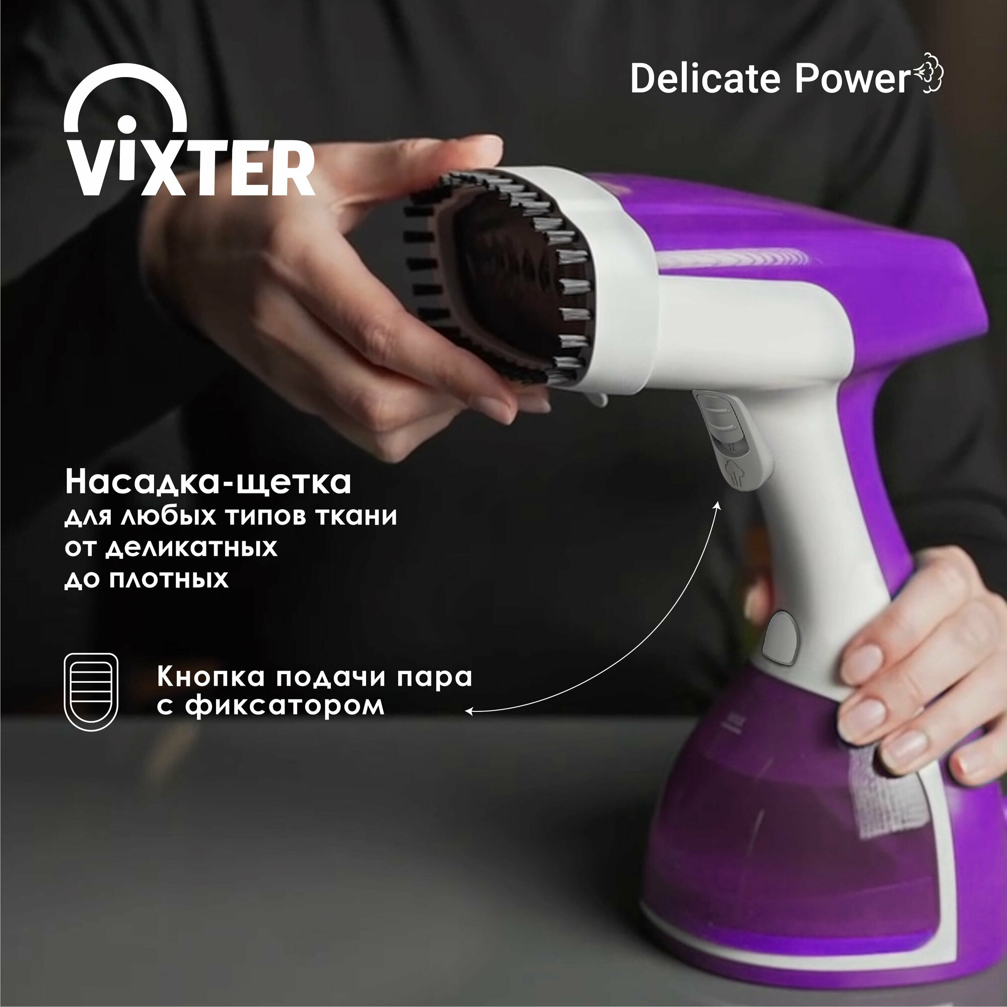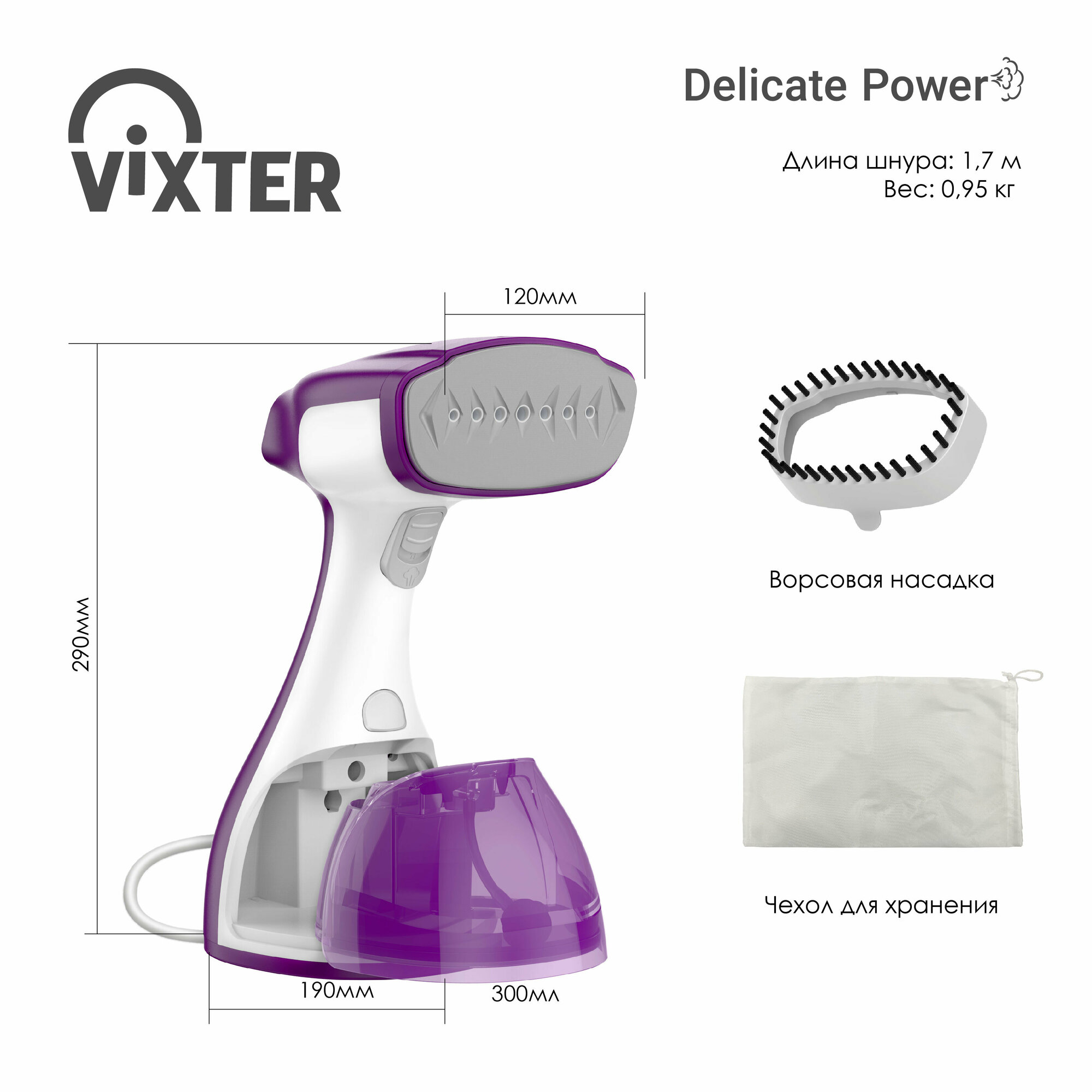 Отпариватель ручной Vixter GSH-1800, 1500 Вт, бело-фиолетовый