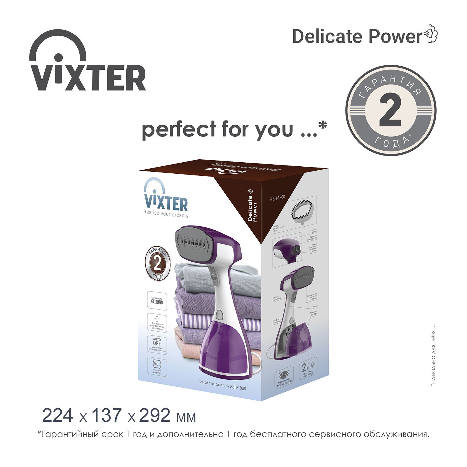 Отпариватель для одежды ручной Vixter GSH-1800 гарантия 24 месяца