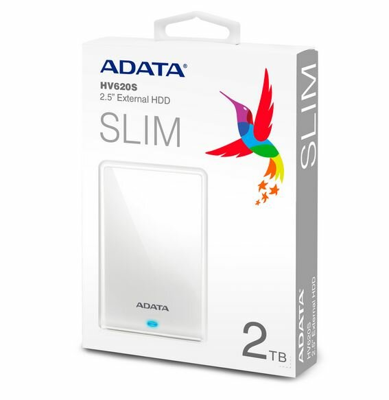 2 ТБ Внешний HDD A-Data HV620 Slim (AHV620S-2TU31-CWH) белый - 2.5", 5400 rpm, USB 3.2 Gen1 (USB 3.0, USB 3.1 Gen1) Type-A