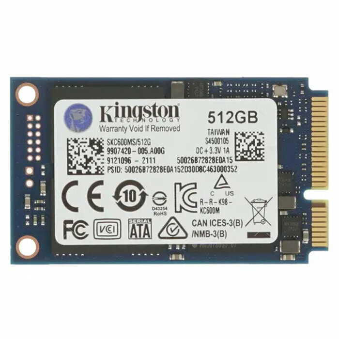 SSD накопитель Kingston MSATA KC600 512 Гб SATA III 3D TLC (SKC600MS/512G)