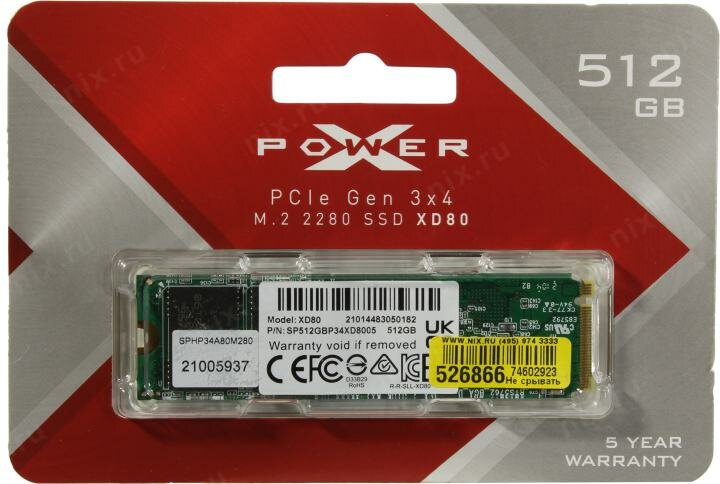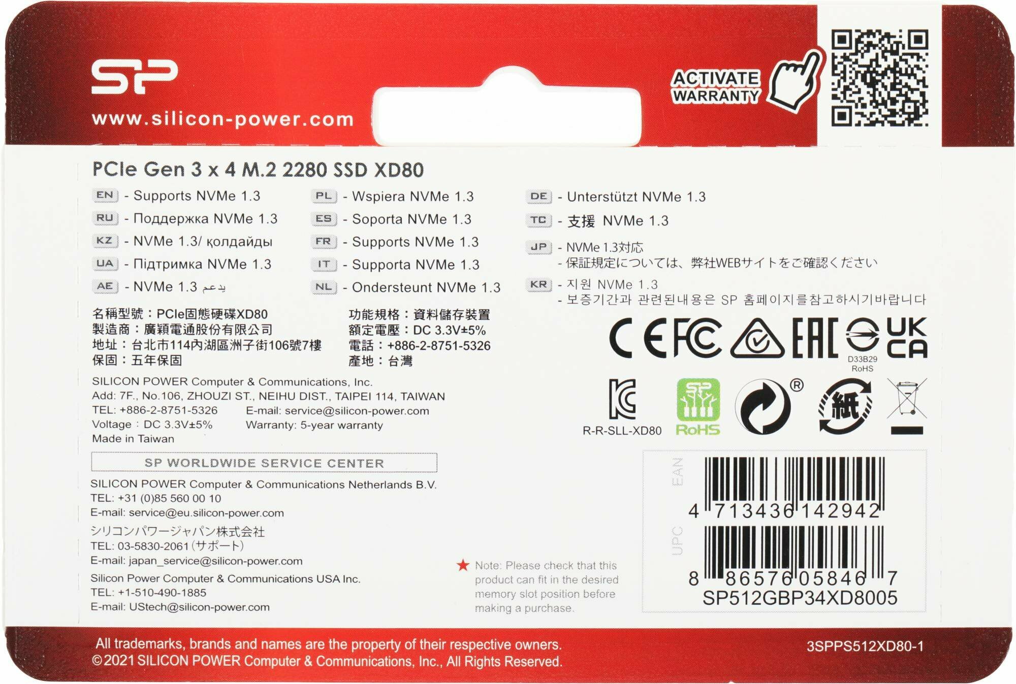 SSD диск SiliconPower M.2 XD80-Series 512 Gb Pci-e x4 3D Nand (sp512gbp34xd8005) SP512GBP34XD8005