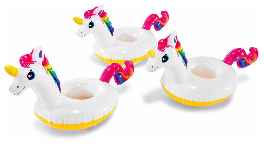 Набор надувных держателей для стаканов "Единорог", INTEX 57506, плавающие, упаковка -3шт.