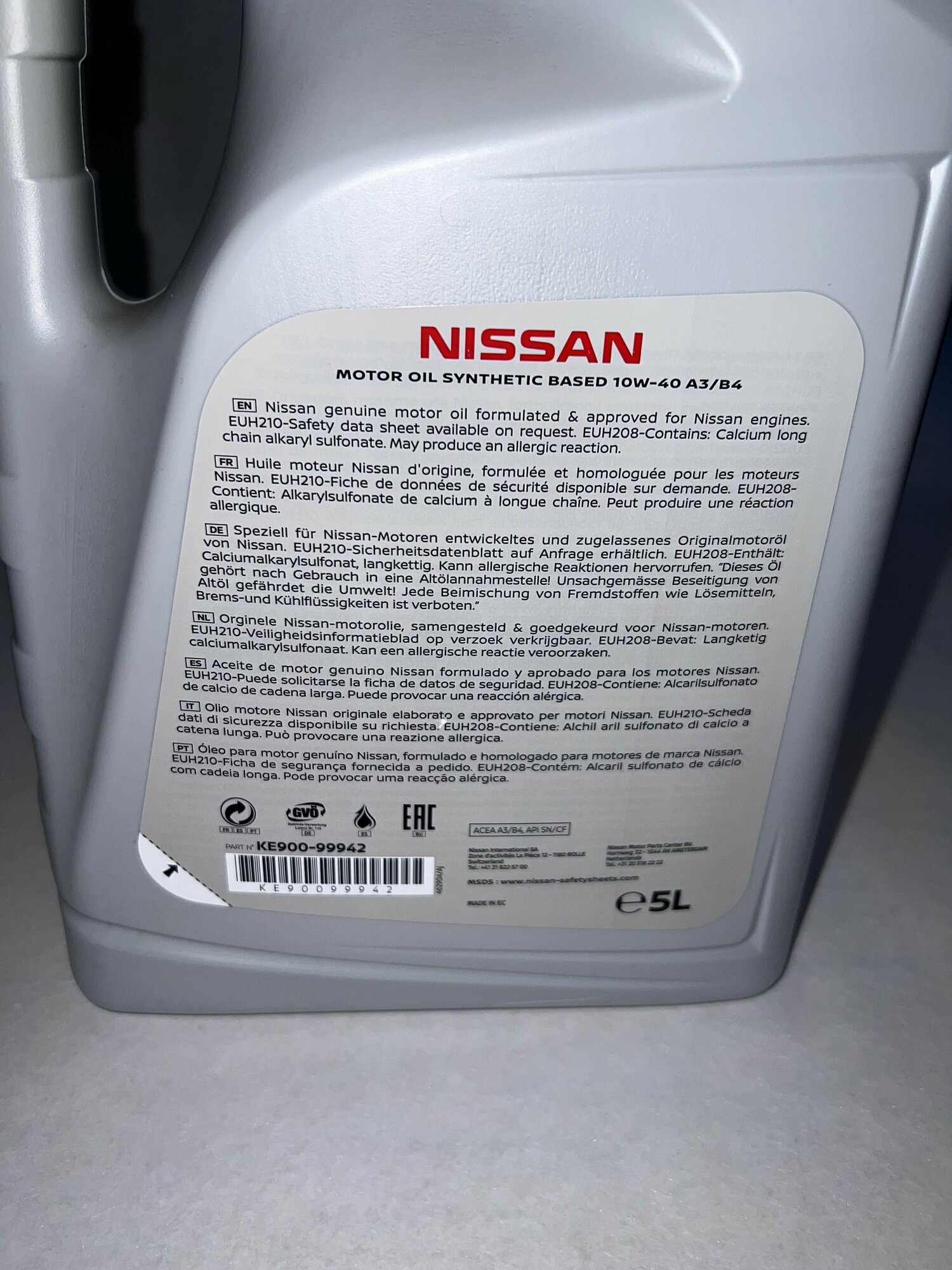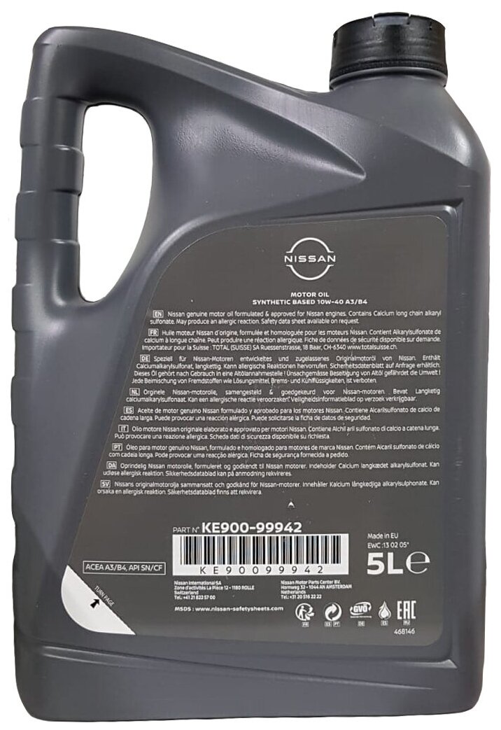 NISSAN 10w-40 5l Ke90099942r Motor Oil Sl/Cf Semi-Synthetic Eu Заменено На Масло Моторное Полусинтетическое