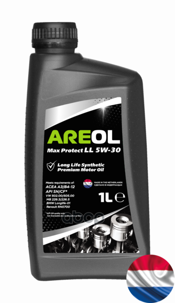 AREOL Max Protect LL 5W-30 (1L)_масло моторное! синт.\ ACEA A3/B4, API SN/CF, MB 229.3/226.5 AREOL / арт. 5W30AR012 - (1 шт)