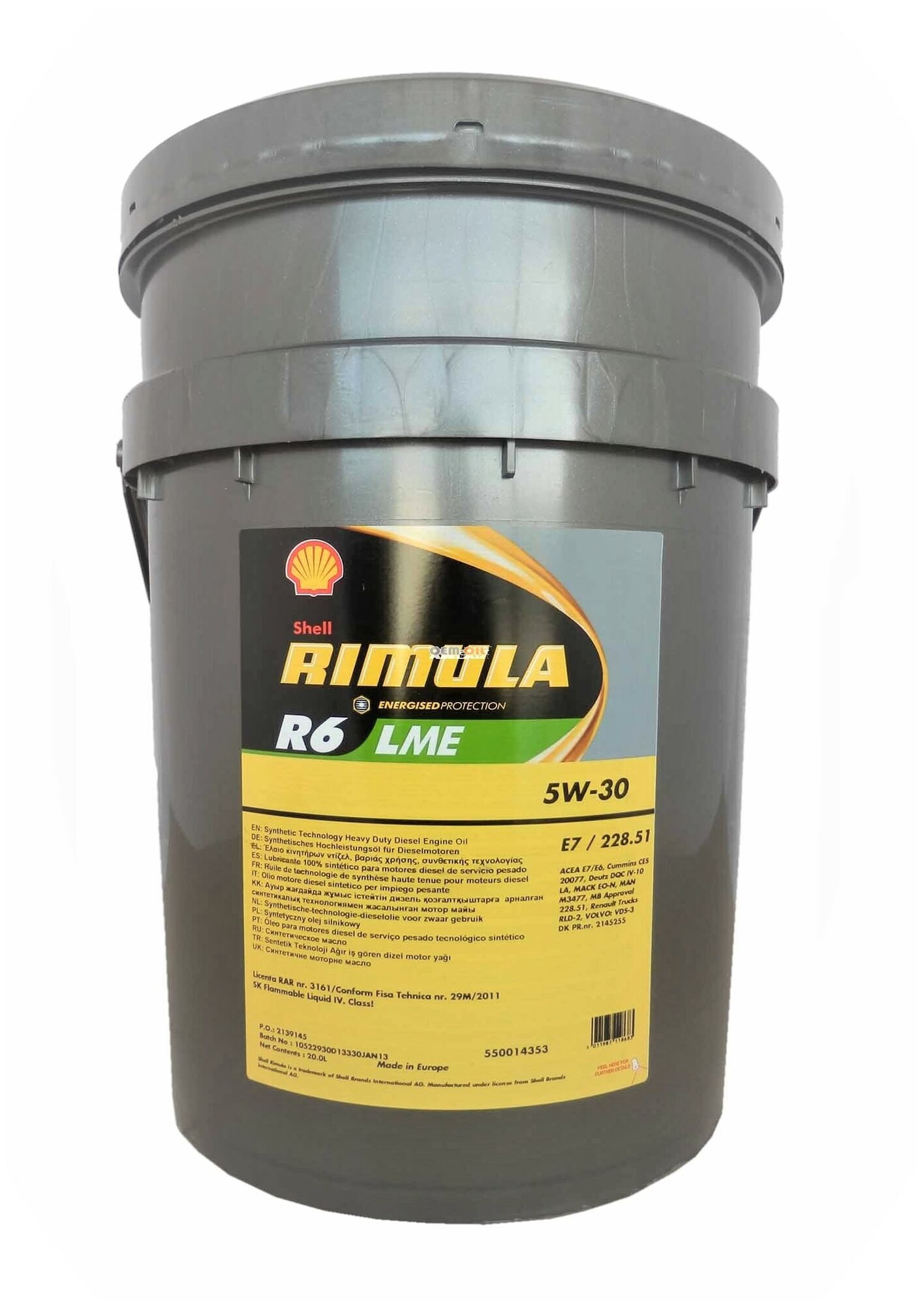 СохранитьSHELL 550043092 DUBL SHELL 5W30 (20L) RIMULA R6LME_масло моторное! 20L,син., ACEA: E6, E7, Cummins: CES 20077, MAN: M3477 интересное: