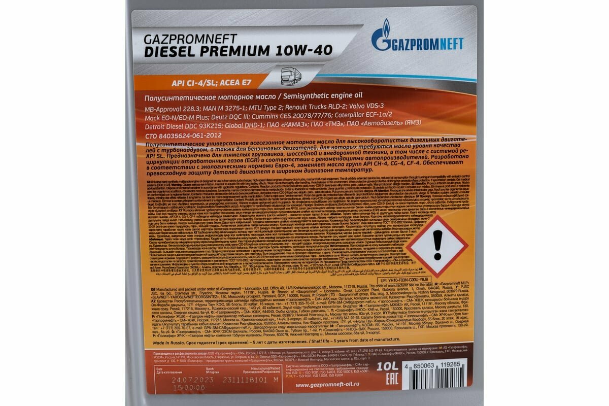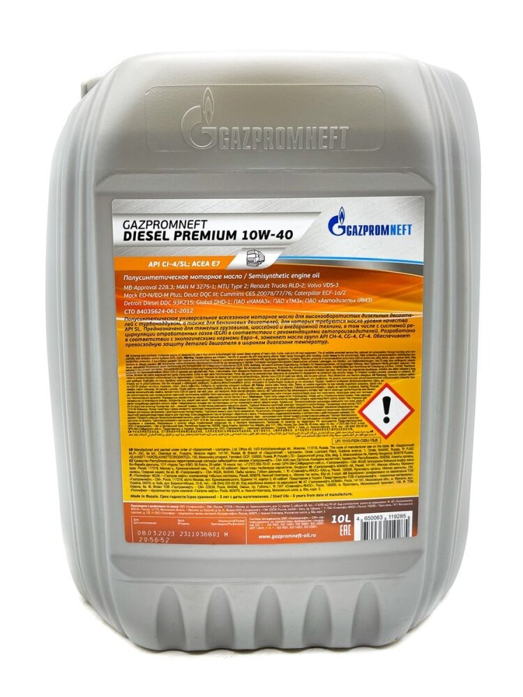 Gazpromneft Масло Моторное 10 Л, Gazpromneft Diesel Premium 10W-40 10W-40 Mb 228.3/229.1 M3275-1 Vds 3 Rvi Rld, Rld-2 M...