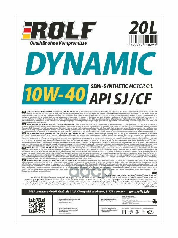 Rolf 4260429110179 Rolf Dynamic Полусинтетическое 10w40 Api Sj/Cf 4л ROLF арт. 4260429110179