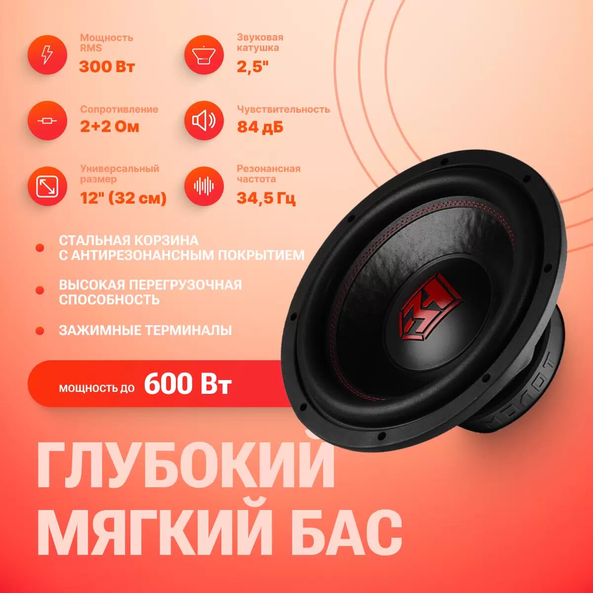 Сабвуфер автомобильный Ural Молот 12 300Вт пассивный (30см/12") интересное: