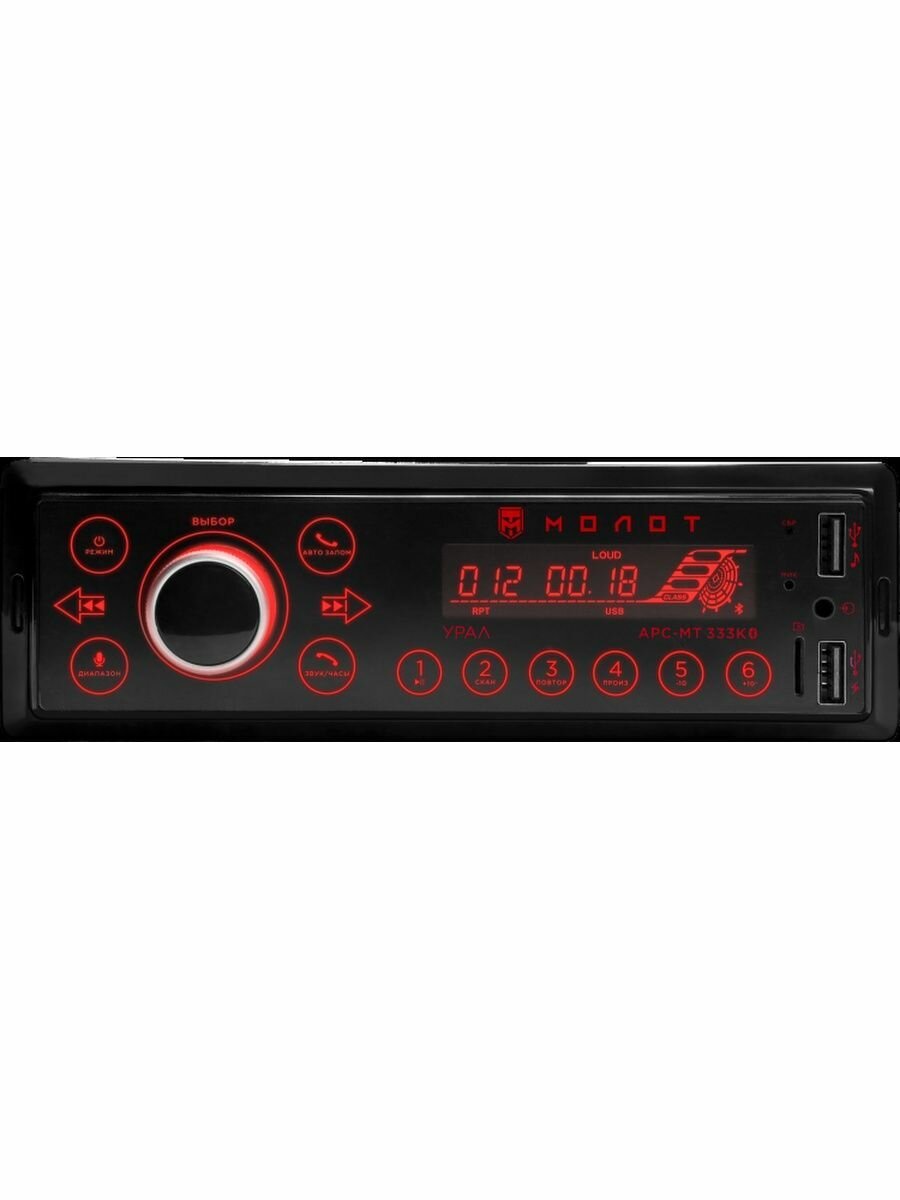 Автомагнитола Молот Арсмт 333К 1 Din, (4X25 Вт), Aux, Sd/Mmc, Usb X2, Bt ,Красная Подсветка Урал Молот Арс-Мт 333К урал арт. ...