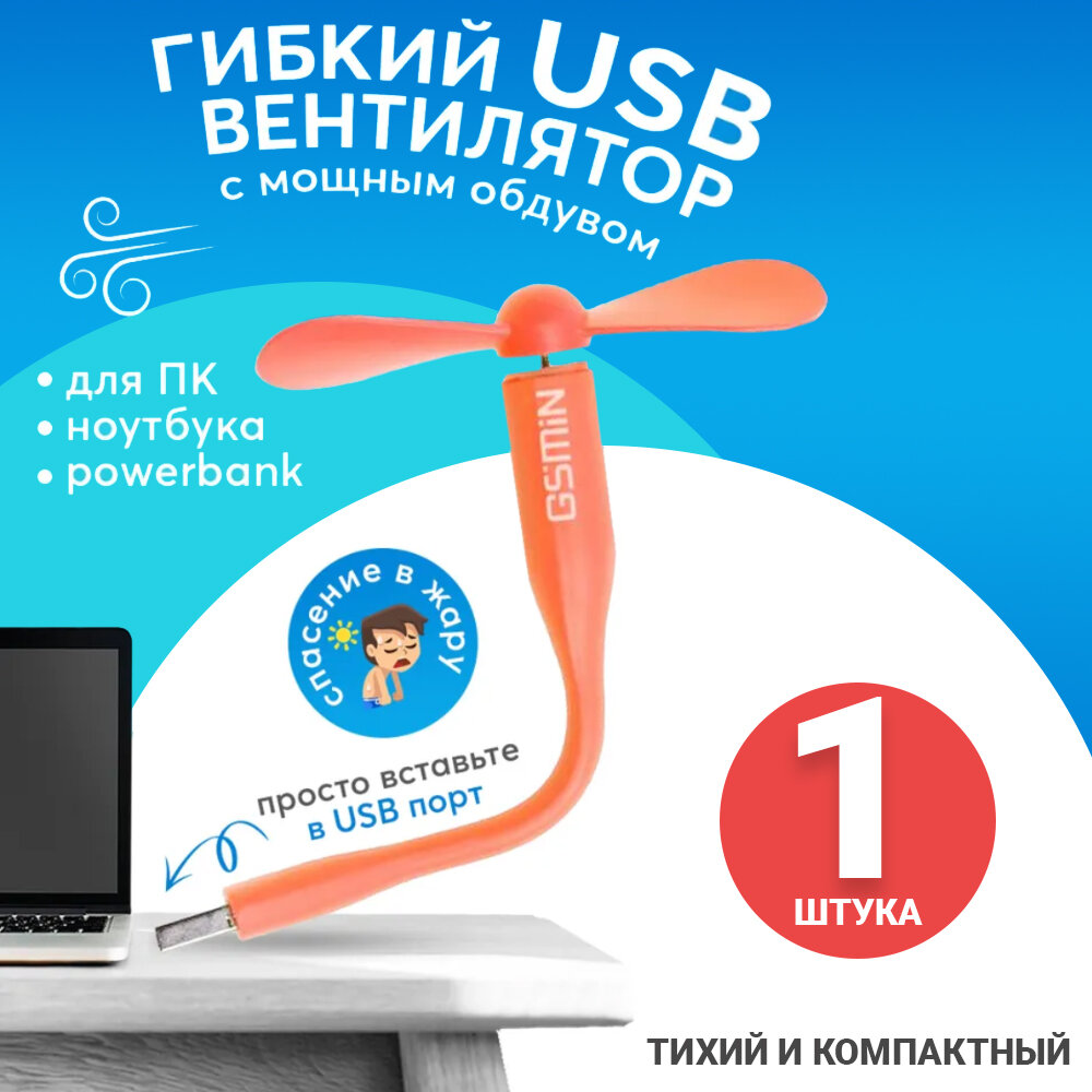 Компактный настольный мини USB вентилятор GSMIN Fruit гибкий портативный, работает от PowerBank, Ноутбука, Компьютера (Оранжевый) интересное:
