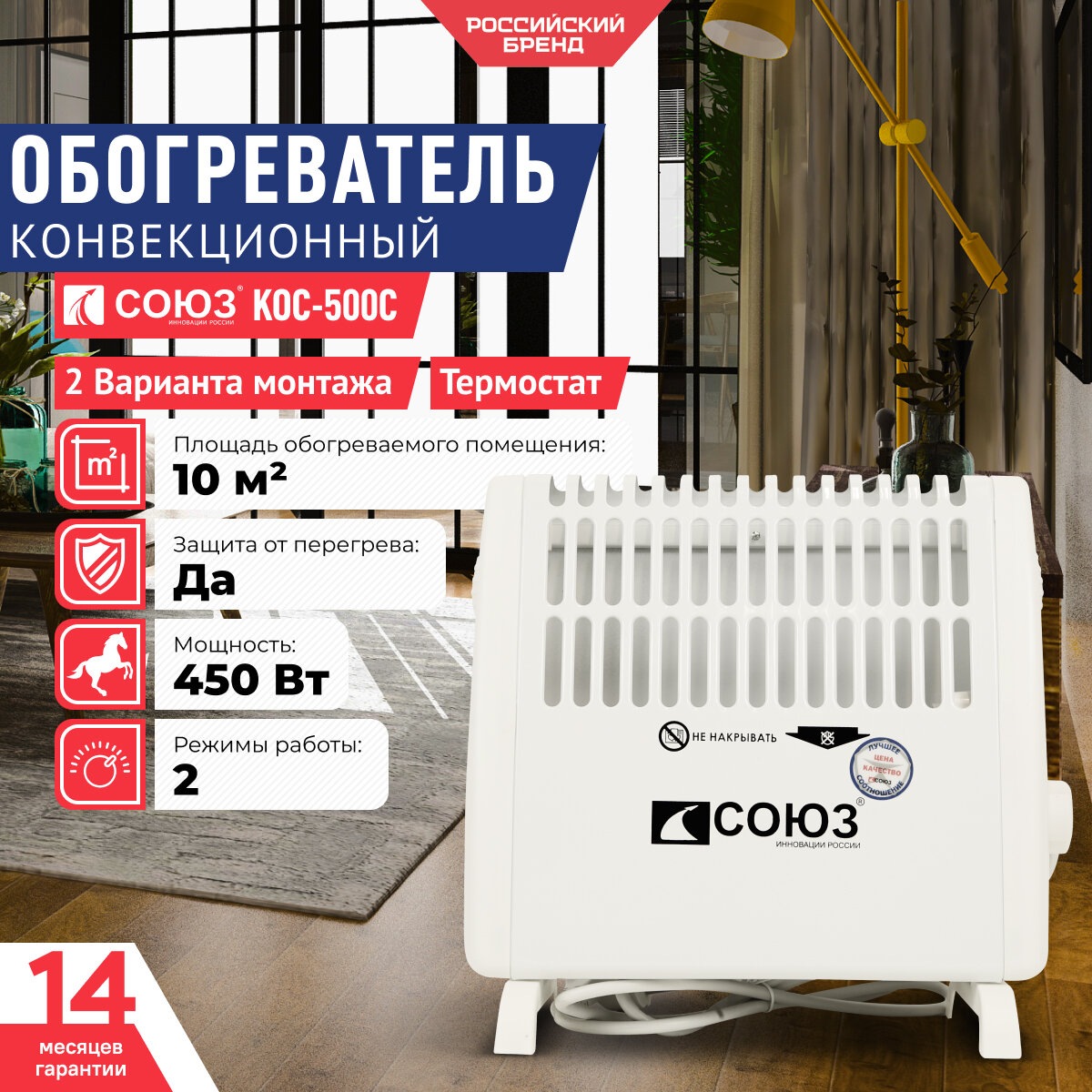 Союз Кос-500с Конвекторный обогреватель 450Вт,стич,мех.термостат,напольн/настен,СОЮЗ [кос-500с]