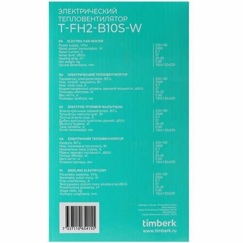 Тепловентилятор Timberk T-fh2-b10s-w .