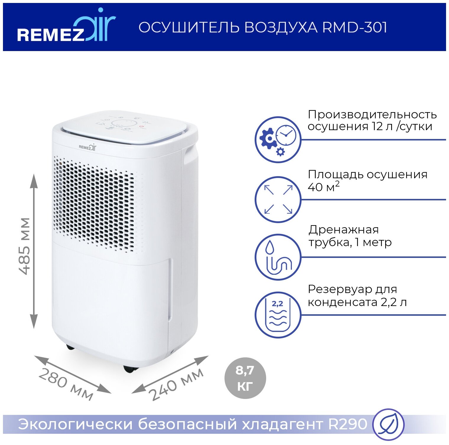 Осушитель воздуха REMEZAIR RMD-301 белый