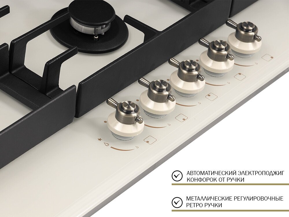 Газовая варочная панель HIBERG VM 9055 RY, независимая, бежевый