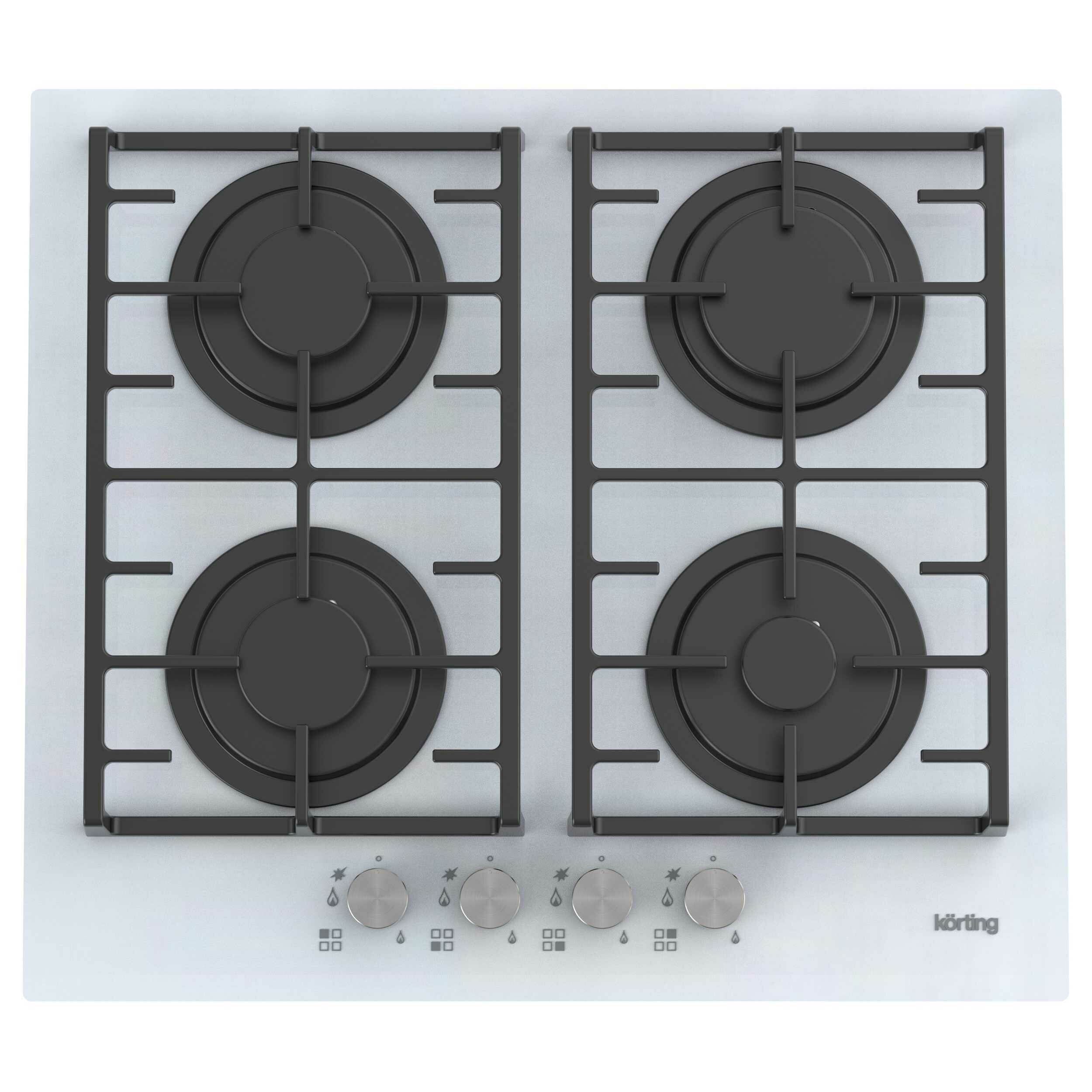 Встраиваемая газовая панель Korting/ Газовая варочная панель из закаленного стекла, ширина 60 см, 4 высокоэффективные конфорки, автоматический электроподжиг, газ-контроль каждой конфорки, передние металлические переключатели, чугунные решетки для посуды,