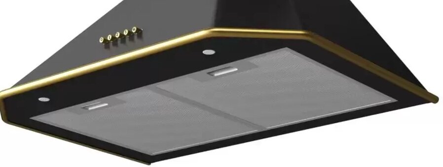 Купольная вытяжка для кухни 60 см классический дизайн Korting KHC 6839 RGN, черная с фурнитурой под золото, кнопочное управление, мощность 850 м3/ч, 3 режима, LED подсветка