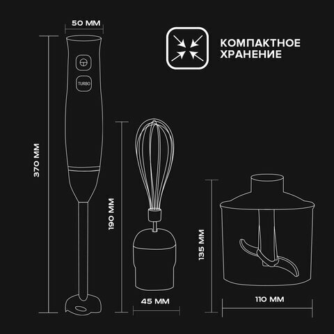 Погружной блендер SCARLETT SC-HB42F84 с турбо режимом, сталь повышенной прочности