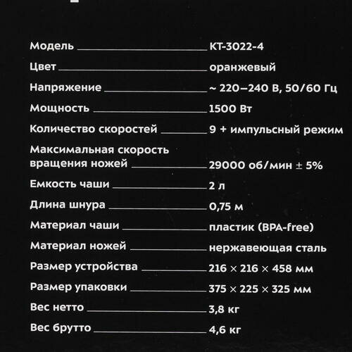 Блендер КТ-3022-4 оранжевый
