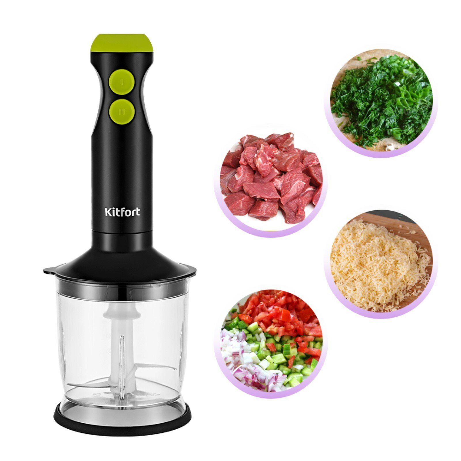 Купить Блендер погружной 3 в 1 Kitfort КТ-3041-2 черно-салатовый