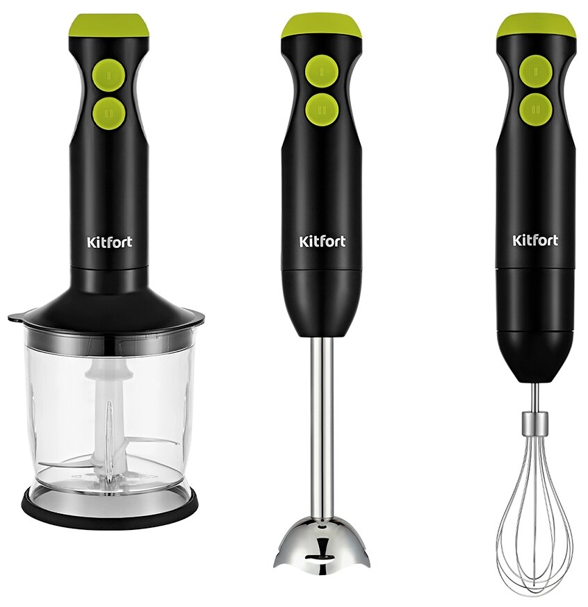 Блендер погружной 3 в 1 Kitfort КТ-3041-2 черно-салатовый