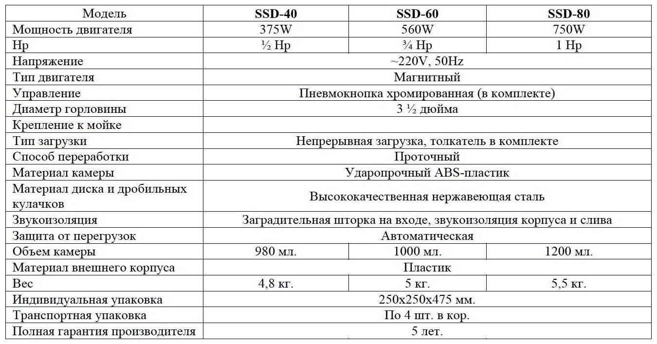 Измельчитель пищевых отходов Seaman SSD-80, с пневмокнопкой интересное: