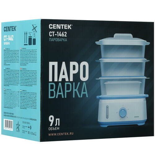 Пароварка CENTEK CT-1462 (серебристый/голубой)