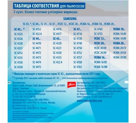 TOP HOUSE TH 003SM Комплект фильтров для пылесосов SAMSUNG интересное: