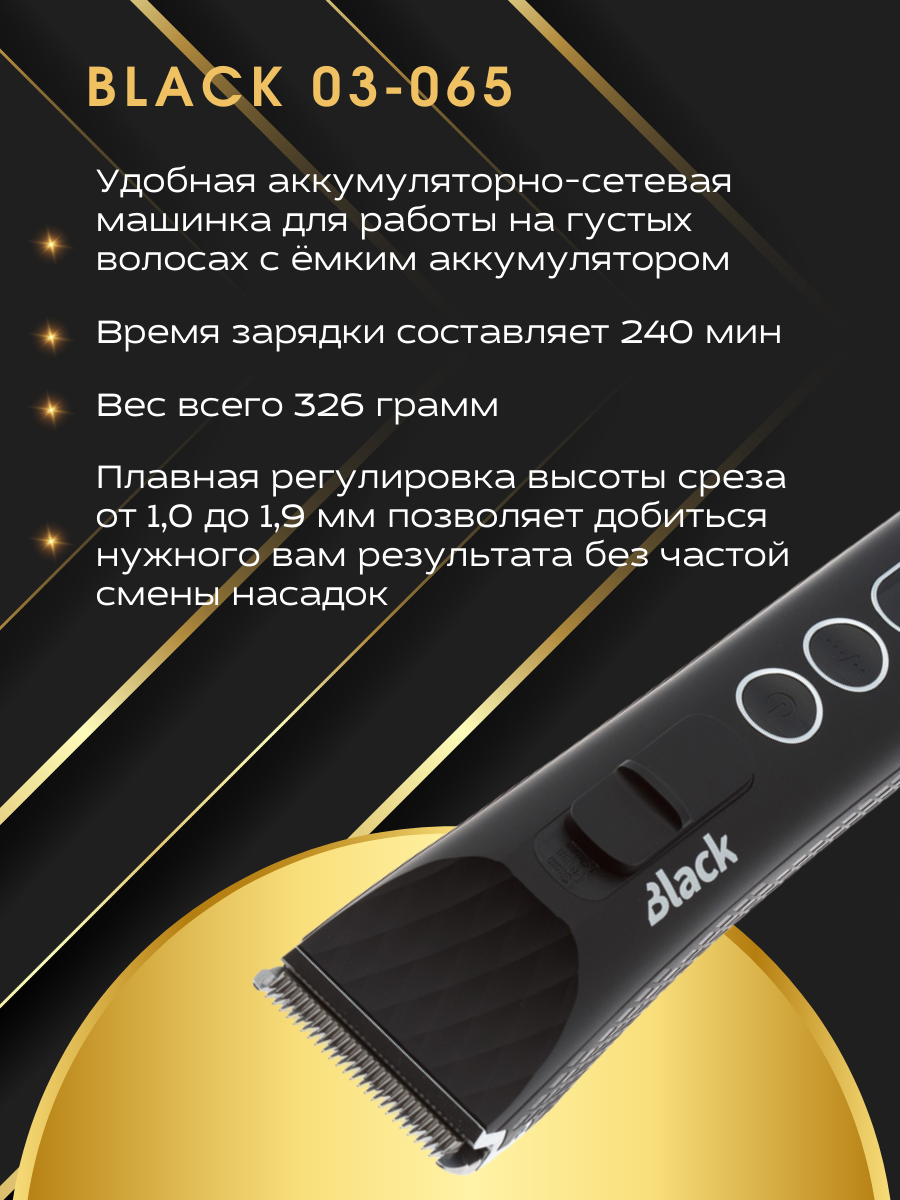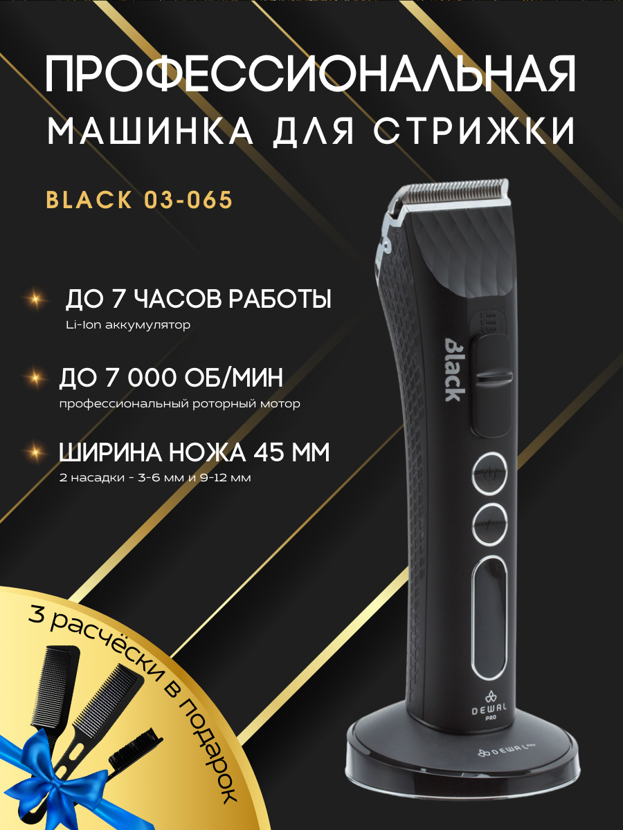 Dewal Машинка для стрижки / BLACK DEWAL 03-065, аккум.\сет., 5000-7000 об.\мин., нож 45 мм, 1.0-1.9 мм, 2 нас.