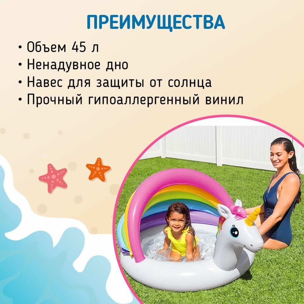 Бассейн детский надувной с навесом intex Единорог 127х102х69см 1-3 лет 57113 / Бассейн для дачи