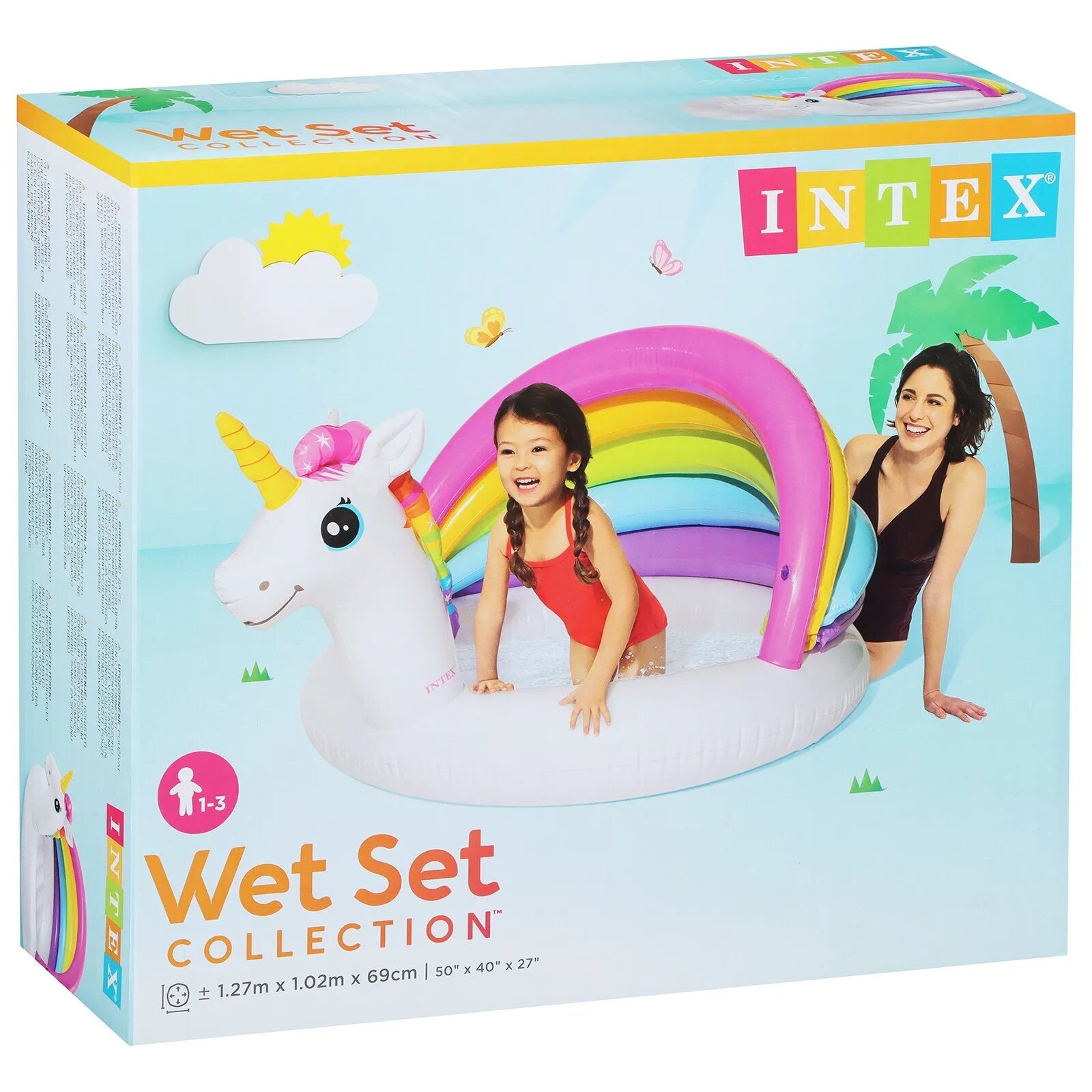 INTEX Детский бассейн с навесом Радужный Единорожка 127*102*69 см, надувное дно 57113