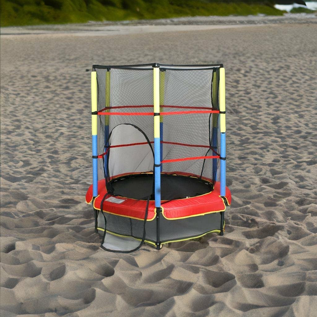 Купить Батут каркасный детский, с защитной сеткой, красный, диаметр 140 см