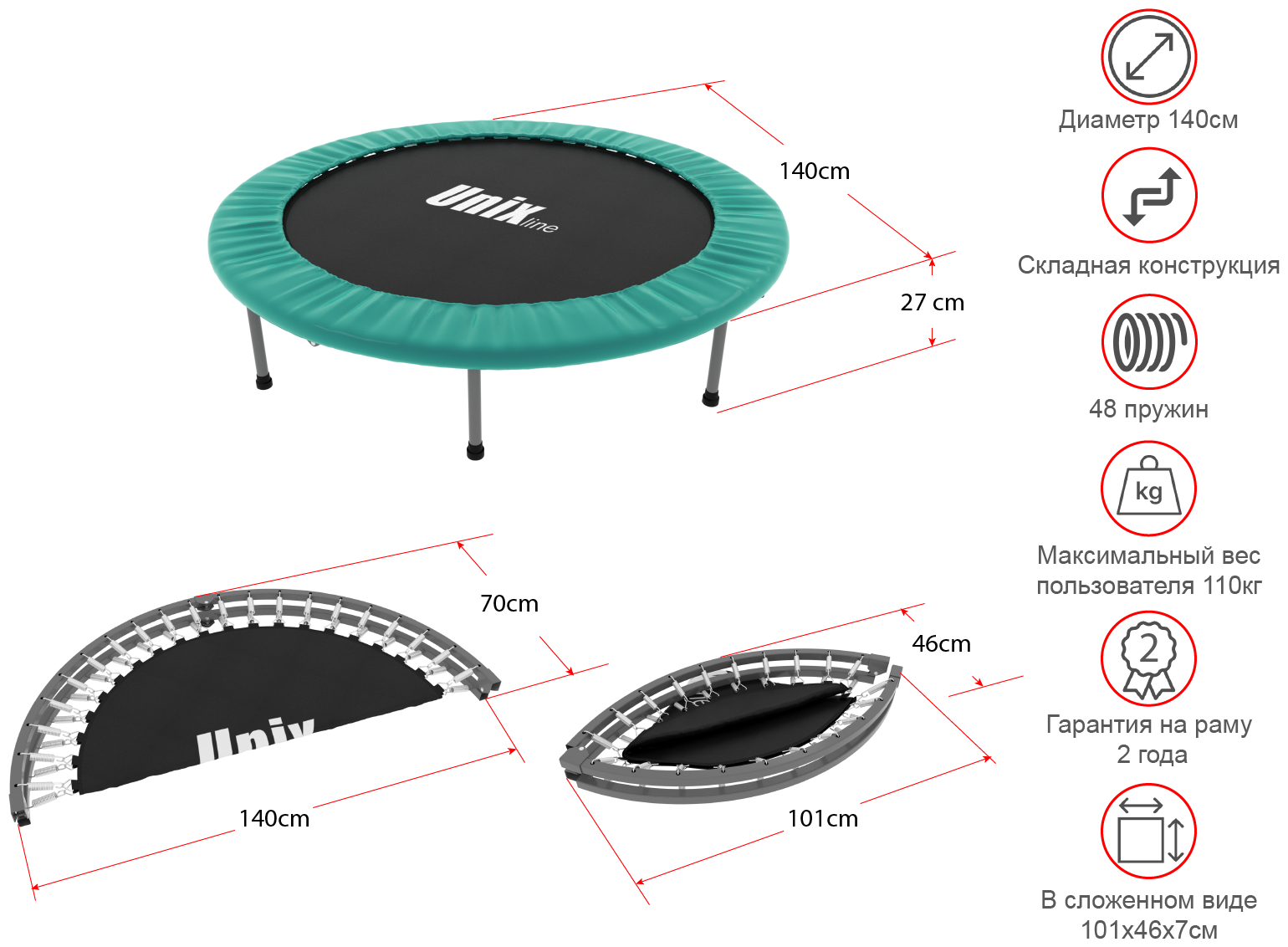 Батут UNIX Line FITNESS Compact (140 cm) интересное: