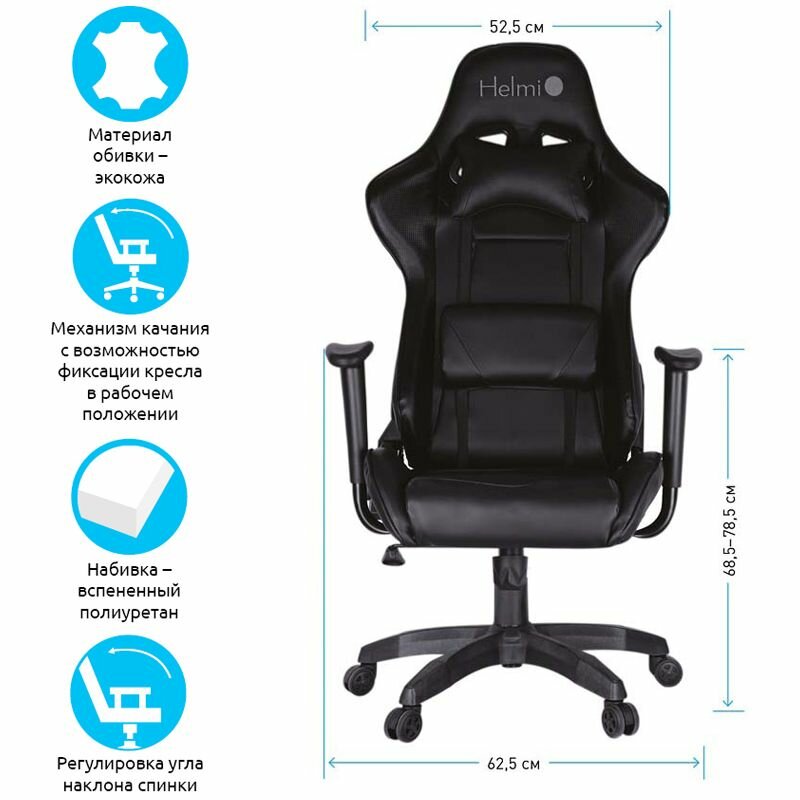 Кресло геймерское Helmi HL-G09 "Control", экокожа черная, 2 подушки интересное: