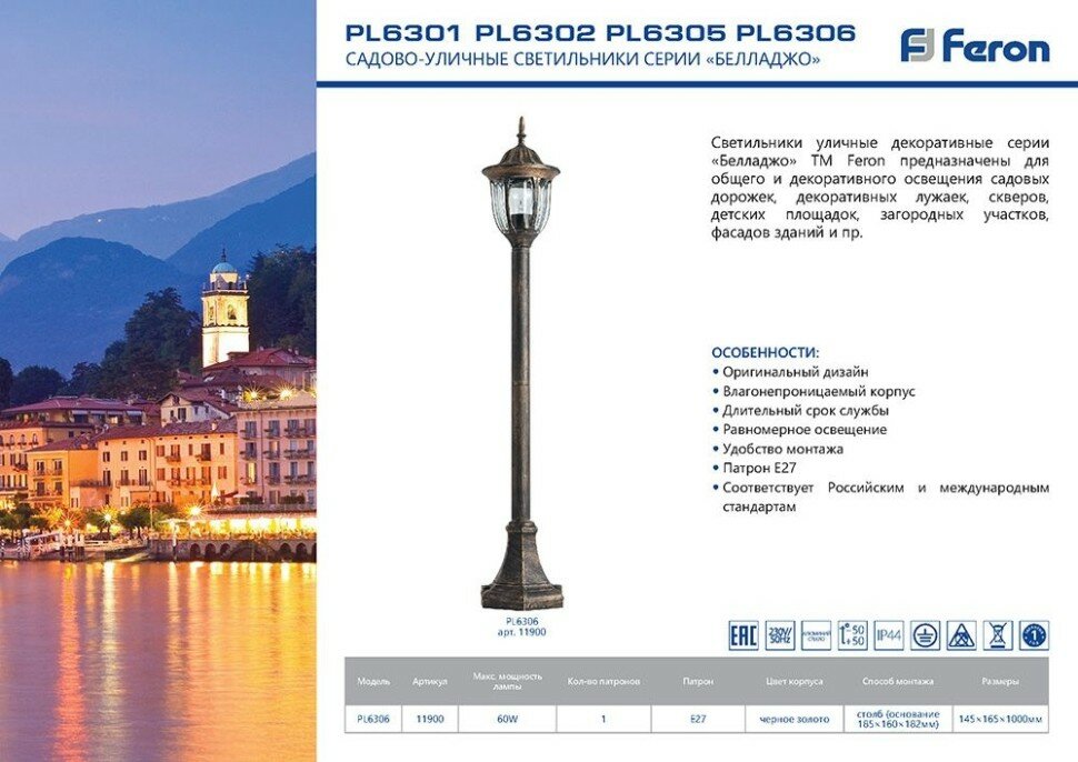 Светильник садовый Feron, серия PL6306, 11900, 60W, E27