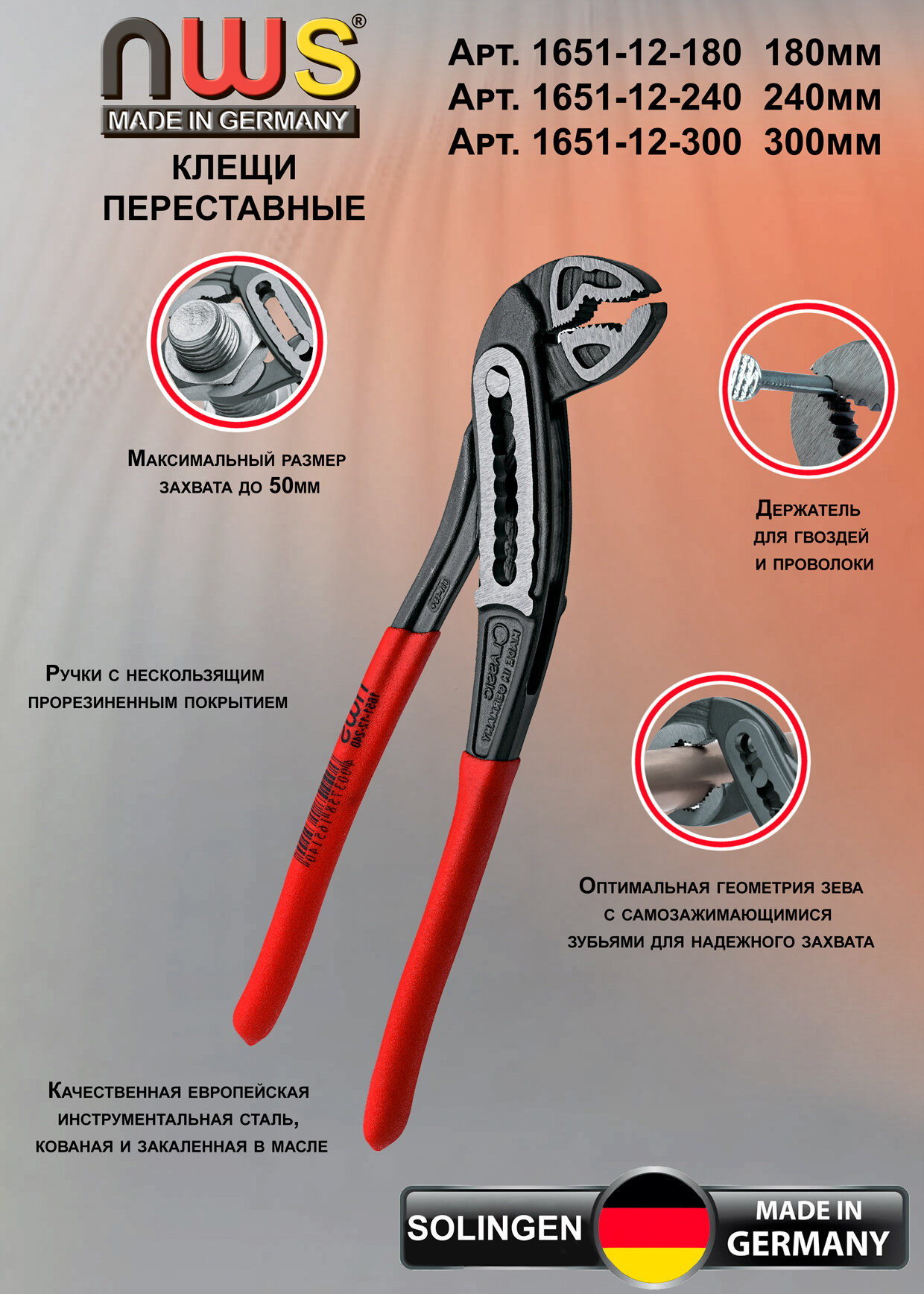 Клещи переставные NWS ClassicPlus, 300 мм, покрытие TitanFinish, обливные рукоятки арт.1651-12-300 интересное: