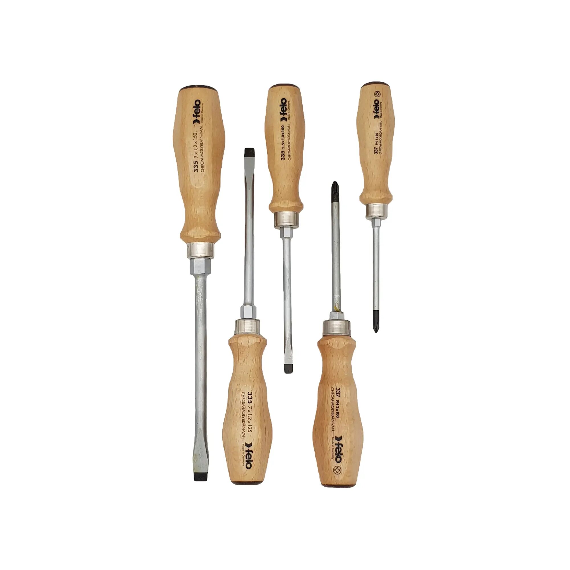 Набор отверток FELO 33595198, SL/PH с деревянной рукояткой, 5 шт, ударные