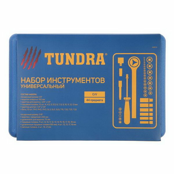 Набор инструментов в кейсе TUNDRA, автомобильный, CrV, 1/4" и 3/8", 44 предмета TUNDRA 881879 .