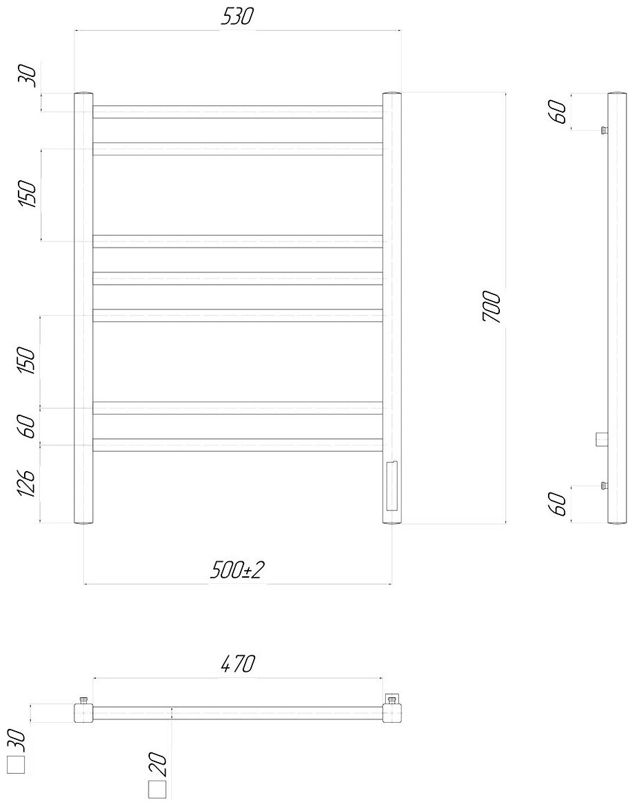 Полотенцесушитель электрический 500x700 Lemark Unit (LM45707Z) диммер справа