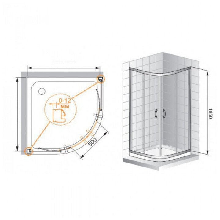 Душевой уголок Cezares Pratico R2 90 P Cr PRATICO-R-2-90-P-Cr