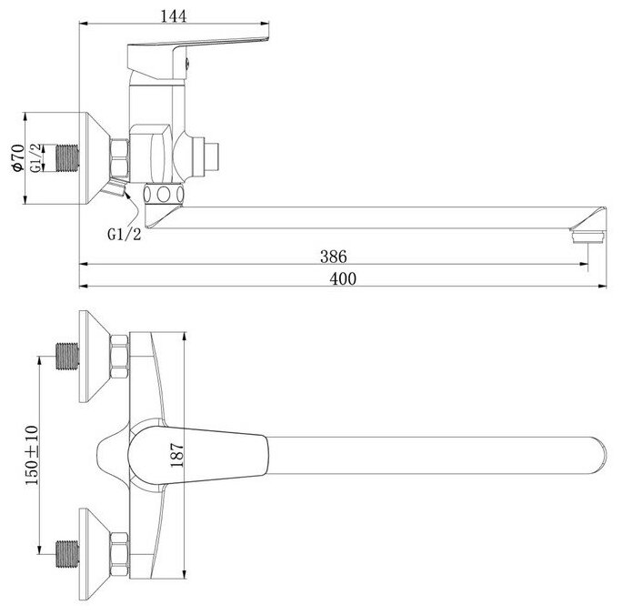 | Длина излива | 386 мм |