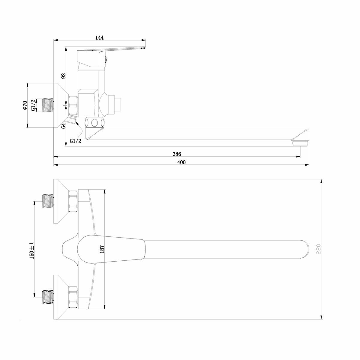 | Длина излива | 386 мм |