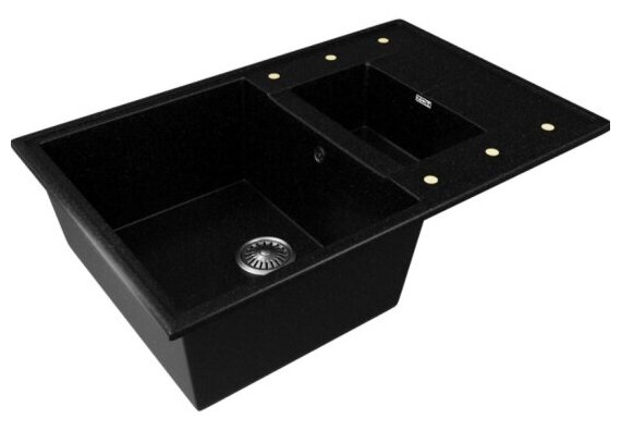 Кухонная мойка ZOX ZX-GM 07 74х48 с крылом и дополнительной чашей, черная (4630085462057)